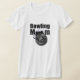 Dieses Ausrüstungsbeschreibungen die Wörter "Bowlings-Mama" mit einem Marmor färbten den Bowlingsball, der sprengt durch den Buchstaben "O"