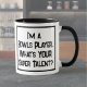 Drôle slogan sur une tasse qui dit "Je suis un Bowls Player. Quel est VOTRE super talent ?" Deux Tone Mug pour un Bowls Player. Texte en gras noir et blanc.