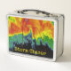 Image couleur du radar météorologique montrant un avertissement d'orage et de tornade approchantLectures radar rouge, jaune, rouge, bleu et vertChaser de tempête en texte jaune doré peut être personnalisé avec votre propre message