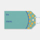 Dieses Geschenk-Tag aus meiner Colorful Circus Collection zeigt ein Muster von verstreuten Popcorn-Kerneln in goldgelb auf einer Seite und eine blau-weiß gestreifte Box Popcorn auf der Rückseite.