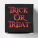 Lebhafte orangefarbene Buchstaben traditioneller Halloween-Gruß "Trick or Treat". Für diese besondere Leckerei für die besondere Person oder Gastgeschenke für das Halloween-Party.