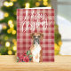 Eine niedliche Boxer-Hund-Weihnachtskarte. Das Design zeichnet sich durch eine Boxer-Aquarellbild und Winter-Blume mit grüner Heiligkeit auf einem karierten roten Hintergrund aus.
