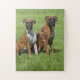 Boxer verfolgt die Aufstellung für ein Puzzlen des Porträts.