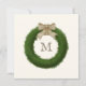 Schicken Sie Ihre persönliche Korrespondenz auf dieser eleganten Karte mit Ihrem Monogramm in der Mitte eines schönen grünen Boxholzkranzes.