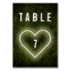 Ein weißes Neonherz über einem Boxwood-Hintergrund mit weißem Text.