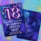 Junge blau lila 18. Geburtstag Einladung Jungs 18 Geburtstagsfeier Einladung für einen Jungen blau lila mit modernem Drehbuch und lustigen Folienballons.