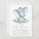 Boy Elephant Blue Gold Baby Dusche Einladung