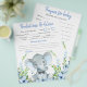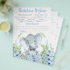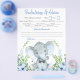 Babyduschspiele mit niedlichem Babyelefant mit Bogen-Krawatte auf blühendem grünem Hintergrund. Diese Elefanten Babydusche Flyer sind mit zwei verschiedenen Spielen zweiseitig ausgestattet.