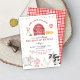 L'invitation à l'anniversaire de la ferme comporte de mignons animaux de ferme. Ce design est idéal pour une fête d'anniversaire à thème Farm Animals. Pour plus d'informations sur ce thème, veuillez consulter le lien suivant : https://www.zazzle.com/collections/fam_birthday_red-119452651692445386?rf=238634342447316205