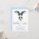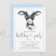 Invitations de fête d'anniversaire de ferme avec mignon veau de vache à l'aquarelle portant une cravate arc sur un arrière - plan de pois bleu. Ces adorables invitations pour fêtes d'anniversaire de vache sont facilement customisées pour votre événement en ajoutant simplement vos détails. Vous pouvez également ajouter une couleur arrière - plan.