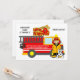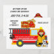 Der kleine Feuerwehrmann wird diese niedliche Feuerwehrwagengeburtstagseinladung, die leicht zu gestalten ist, mit einem Jungen in einer Feuerwehrjacke und einem Hut mit einem dalmatinischen Hund Liebe!
