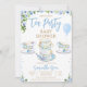 Feiern Sie Ihren kleinen Gentleman mit unserer charmanten Boy Garden Tea Party Baby Shower Invitation. Vintage Teetassen, weiche blaue Blumen, üppige Vegetation und ein zarter Ballonakzent. Ideal, um die Ankunft eines kleinen Jungen in zeitlosem Stil zu feiern. Lassen Sie sich mit diesem wunderbar gestalteten Tee-Party mit einer Babydusche zum Tee und zum Feiern Ihres Kleinen einladen! BBS649