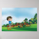 Ein Junge draußen auf dem Golfplatz, der eine Runde Golf spielt. Dieses Design sieht auf diesem Poster wirklich effektiv aus