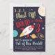 Invitation vos amis à une fête qui sortira de ce monde avec cette adorable invitation à l'anniversaire de l'espace extra-atmosphérique avec une fusée explosant dans l'espace entre les planètes, les étoiles et les galaxies !