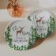 Junge Grünbäume und Teller für Reh-Baby-Dusche. Personalisierbar!