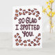 Notre carte de la Saint-Valentin pour petit ami, avec les mots "Tellement ravi de vous avoir repéré", est un moyen idéal d'exprimer votre affection pour votre petit ami. Avec son lettrage original et son motif ludique de taches de léopard, cette carte est sûre de faire se sentir chéri et apprécié votre être cher. Son style moderne est parfait pour lui. Vous pouvez personnaliser le message, en ajoutant une touche sincère à votre sentiment.
