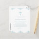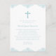 Cette carte postale d'invitation baptism garçons bleu et blanc présente une croix bleu pastel et un design bleu décoratif en haut et en bas. Le texte bleu peut être modifié en fonction d'une première communion ou d'une confirmation. Ajoutez votre adresse de retour à l'arrière et tout autre texte si vous le souhaitez.