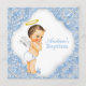 Boy's Engel Taufe und Taufen Einladung mit einem bezaubernden Engel Baby Junge auf einem schönen Baby-blauen wirl Hintergrund. Diese bezaubernde Taufveranstaltung für Babyblau und Weißengel lässt sich ganz einfach an Ihre Veranstaltung anpassen, indem Sie einfach Ihre Angaben in den Schriftart und den Wortlaut Ihrer Wahl einfügen. Sie können auch die Hintergrundfarbe ändern. Dies ist ein gedrucktes Design ohne echte Diamanten, Glitzer, etc.