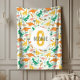 This cute and modern monogrammed boy blanket features a playful, full-coverage jungle dinosaur pattern with a T-Rex, Stegosaurus, and lush Jurassic plants in rich, earthy tones. Designed with space for your child’s name and initial, it’s the perfect personalized gift for baby showers, birthdays, nurseries, or any little dino fan. Soft, stylish, and totally roarsome!