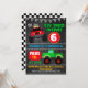 Boys chalkboard monster trucks invitation anniversaire Colorful monster trucks invitation anniversaire avec des camions rouges et verts et le drapeau à botter sur un arrière - plan de tableau noir. Cette invitation est une façon colorée pour les invités invitations à la fête d'anniversaire de votre petit garçon.