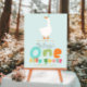Ce joli et fantaisiste garçon de 1er anniversaire design de signe de bienvenue comprend une oie stupide avec un casquette de fête bleu, et peut être personnalisé avec le nom de votre enfant dans la typographie mignonne et colorée. Le design de la ferme parfait pour le premier anniversaire de votre petit!
