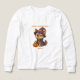 Adorable wolf in a Halloween costume holding a pumpkin candy bucket. With soft colors, sweet details, and a cozy fall vibe — perfect for spooky-cute T-shirts, hoodies, or gifts