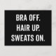 "Bra ab. Hair auf. Schwitzt." lustiges Zitat.