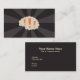 Visitenkarte mit einem Gehirn mit orangefarbenen Ausrufezeichen auf einem dunklen Sonnenbrust-Hintergrund.