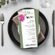Branche avec rose rose et fleurs blanches sauge mariage carte de menu BUDGET. Cette élégante carte de menu mariage présente un cadre blanc classique, agréablement orné de délicates roses roses roses, de fleurs blanches et de feuilles luxuriants. Le côté gauche de la carte est bordé d'un vert sage sophistiqué, apportant une touche de charme terrestre. Le mot 'MENU' et les noms du couple sont affichés en caractères gras, ce qui fait une déclaration frappante. Le dos de la carte est un vert sage solide, offrant un cadre épuré et minimaliste.