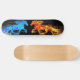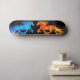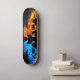 Dd Marke Skateboard, mit Grafik eines Feuerpferdes und eines blauen Eispferdes, auf schwarzem Hintergrund. Passen Sie Ihren eigenen Text an.
