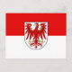 Postkarte mit Brandenburger Landesflagge, Design mit zwei rot-weiß-Streifen mit dem Wappen des Staat und Abbildung eines roten Adlers in der Mitte