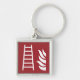 Feuerleiter und Flammensymbol auf rotem Hintergrund.