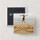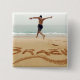 COPYRIGHT Stephanie Rabemiafara / DanitaDelimont.com| AF36 SRA0000.jpg| BRASILIEN. Barechest Mann mit einem Anzug, der auf dem Sand sprang, über den Namen Brasilien im Sand geschrieben, Springen in Richtung Meer
