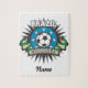 Brasilien-Fußballgang mit Fußball in der Mitte und im Brasilien färbt Fahne mit dem Fußballtext, der für Fans und Spieler des Fußballs groß ist!