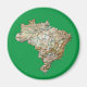 Das Design auf diesem Magneten verfügt über eine Karte von Brasilien mit einem farbigen Hintergrund. Fügen Sie Ihrem Zuhause einen brasilianischen Geschmack hinzu.