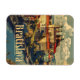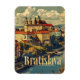 Eine bezaubernde Oldtimer-Reisewerbung für Bratislava, die die reiche Geschichte und das kulturelle Erbe der Stadt zeigt. Das Design besticht durch seine Sehenswürdigkeiten, die traditionelle Architektur und die malerischen Gassen, die alle in einem nostalgischen Retro-Stil gehalten sind. Das Kunstwerk verleiht dem Betrachter ein Gefühl von Wanderlust und zeitloser Schönheit, die bezaubernde Hauptstadt der Slowakei zu erkunden.