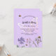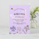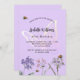 Ein violetter, lavenderfarbener Hintergrund. Mit Bienen dekoriert, Wildblumen in Violett und Rosa bemalt und ein großer Schmetterling. Personalisieren und fügen Sie einen Namen und Party-Details hinzu.