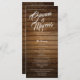 Rustikales Stallholz-Designer-Text bedruckt Rack-Karte Hochzeitsprogramm mit vollständig anpassbarem Text.