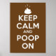 Ein braunes Poster mit weißem Text Behalte Ruhe und kacke auf. Über dem Text befindet sich ein Symbol für den weißen kack.