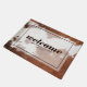 Braun und weiß realistisch aussehende cowhide Bild mit individueller Typografie in dunkelbraun.