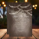 Erzählen Sie Ihren besonderen Tag mit unserer bräunlichen Stringleuchten Save the Date Karte. Dieses charmante Design besticht durch einen rustikalen Baum, der mit Lichtern der Saiten geschmückt ist und eine warme und einladende Atmosphäre schafft. Dieses einzigartige Save the Date ist ideal für Hochzeiten im Freien und im Wald geeignet und wird Ihre Gäste und Set begeistern.