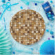 Eine dekorative Wand mit einem Mosaik aus quadratischen Fliesen in den Farben Erdbraun und Beige. Künstlerische Wirbel und Texturen schaffen eine einzigartige Innenarchitektur ästhetisch, ideal für vielseitige Dekorations- und Architekturprojekte.