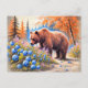 Brauner Bär mit Blueberries Pastell Chalk Art Postkarte