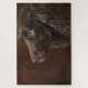 Dieses Design bietet ein fotografisches Portrait eines Hundes mit braunem Haar auf dunkelbraunem Hintergrund.