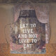 Kunststück, geschaffen von Mensch und Natur. Ein Geschenk für diejenigen, die Liebe Grunge oder Steampunk Stil oder wollte, eine Touch Wabi sabi in der Küche. Sie können den Text "Eat to live and not live to eat" löschen oder durch Ihre eigene Nachricht ersetzen.