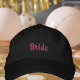 Braut in schicker kursiver Hot-Pink-Schrift auf einem schwarzen Hut für ein Junggesellinnen-Wochenende. Bestellen Sie dieses Brautgeschenk für Ihre beste Freundin.