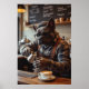 Dieses französische Bulldoggeblätter verwandelt Ihre Wand in eine unglaublich witzig Kaffeeszene. Die Jungtiere, die in einem grünen und weißen Flanell-Shirt mit Aufhängern und Gläsern gekleidet sind, arbeiten hart daran, Milch zu frönen und ein lattes Meisterwerk zu gießen. Sein bug-mit Augen Fokus zeigt, dass er tief im Grind steckt. "Bark Roast" und andere sonnige Getränke ergänzen das Chalkboard-Menü. Ideal für alle, die mit ihrem Coffein-Fix einen Schub Spaß brauchen.