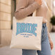 Diese COOL BLUE Kunst-Glitter-Varsity-BRIDE-Tasche ist für die frühen Tage der Verlobung konzipiert, wenn man etwas Lustiges, Funktionales und unverwechselbar Individuelles möchte. Die auffällige Schrift bringt eine spielerische, nostalgische Energie, die sich während der Verlobungszeit und darüber hinaus wie zu Hause fühlt.