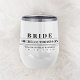 Dieses Design bietet ein Hochzeitsgeschenk Party bevorzugt die Idee für Braut und Bräutigam mit einfacher Typografie, maßgeschneidert, personalisiert, mit einfachen schwarz-weißen Schriften, perfekt für die Hochzeitsfeier Weintumbler.
