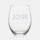 Dieses Weinglas ist mit einem Brautdruck für die Hochzeit bedruckt.